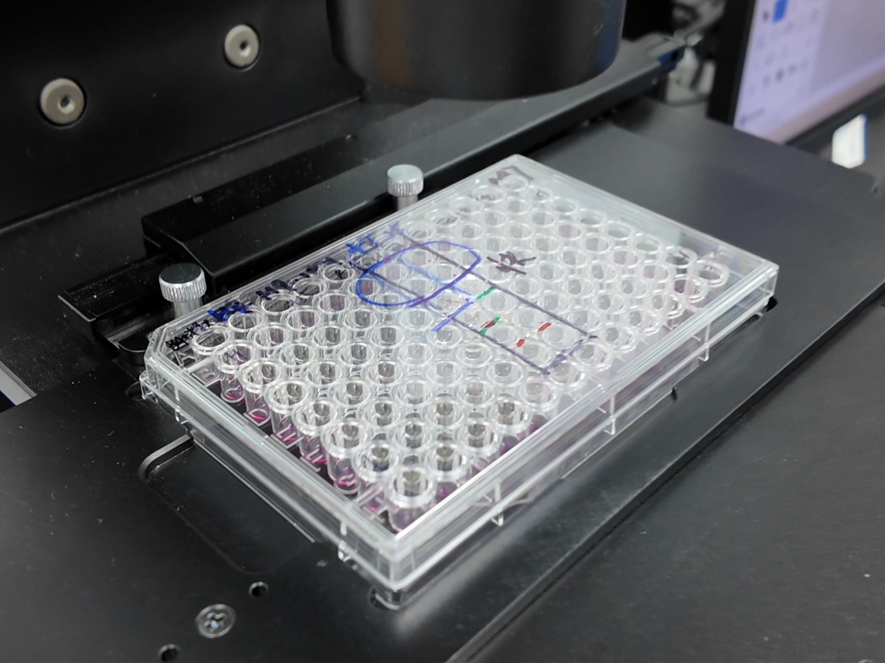 在希格生科的实验室里,一块巴掌大的细胞培养板上,96个孔中各有一个小圆点,透过显微镜,小圆点被呈现在电脑屏幕上——一颗跳动的“心脏”。